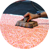 Block printing is a printing technique that uses a solid material to transfer ink into fabric. The block printing process involves engraving a design on the material, known as the block, inking the design, and then using the block as a stamp on the fabric. The resulting design will be a mirror image of the one on the block. The block may be a piece of wood, plastic, or any other suitable material. No machines are used to do block printing